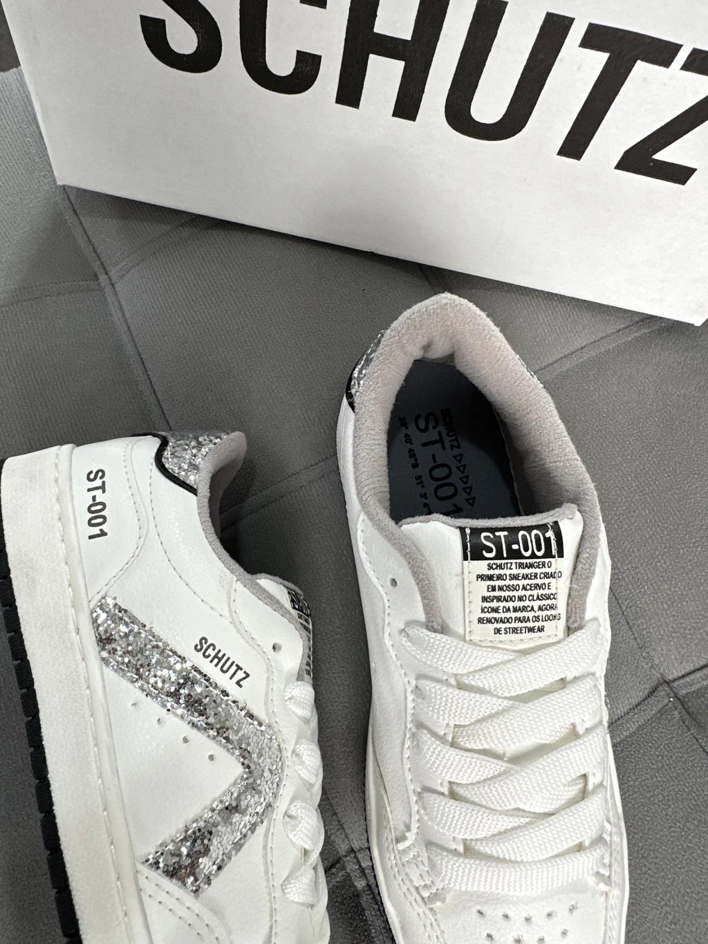 Confortável, versátil e cheio de estilo, o Schutz ST-001 traz o clássico branco com detalhes em glitter prata — perfeito para elevar qualquer look básico.
